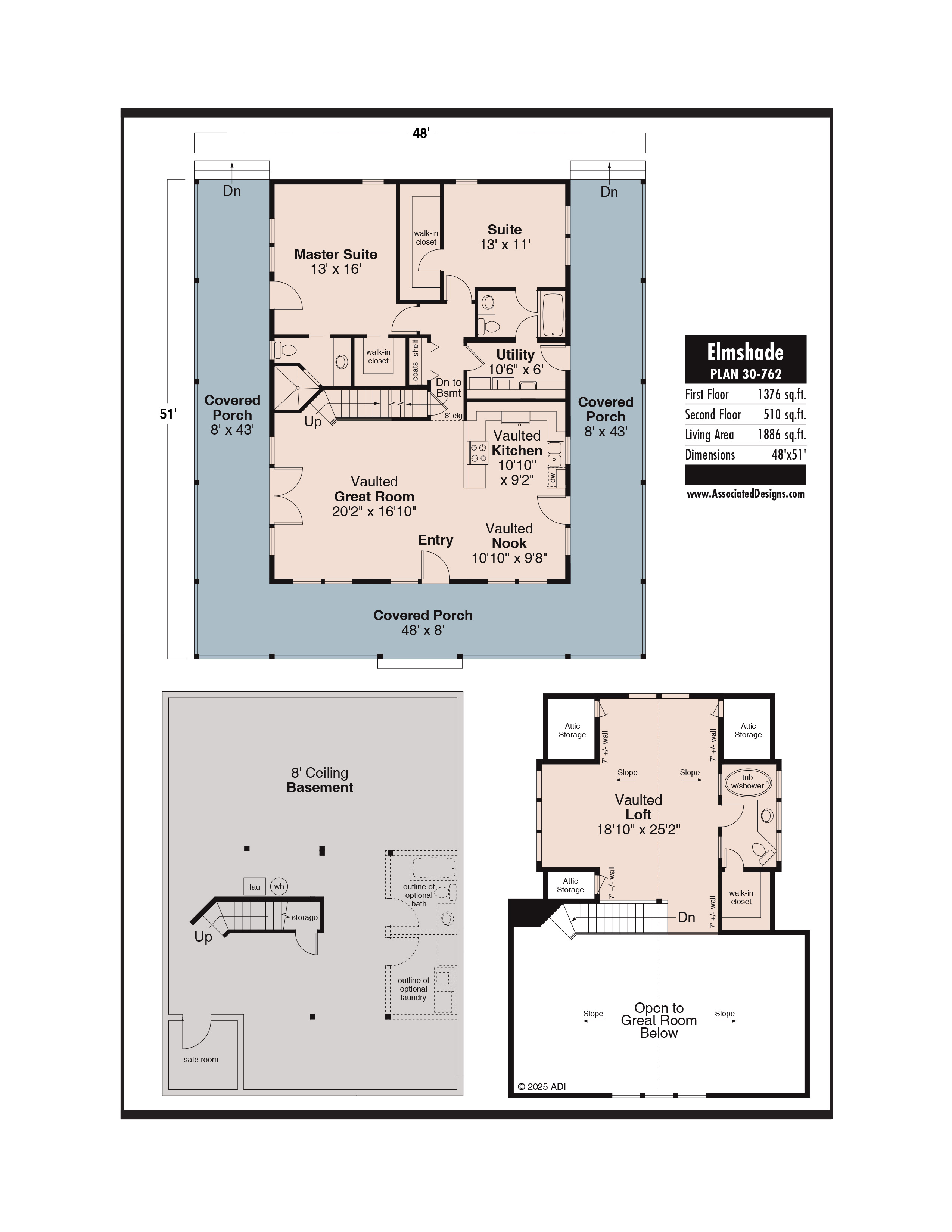 The Elmshade 30-732 created by Associated Designs, Inc.’s talented team of residential home designers. To learn more about this design visit www.AssociatedDesigns.com.