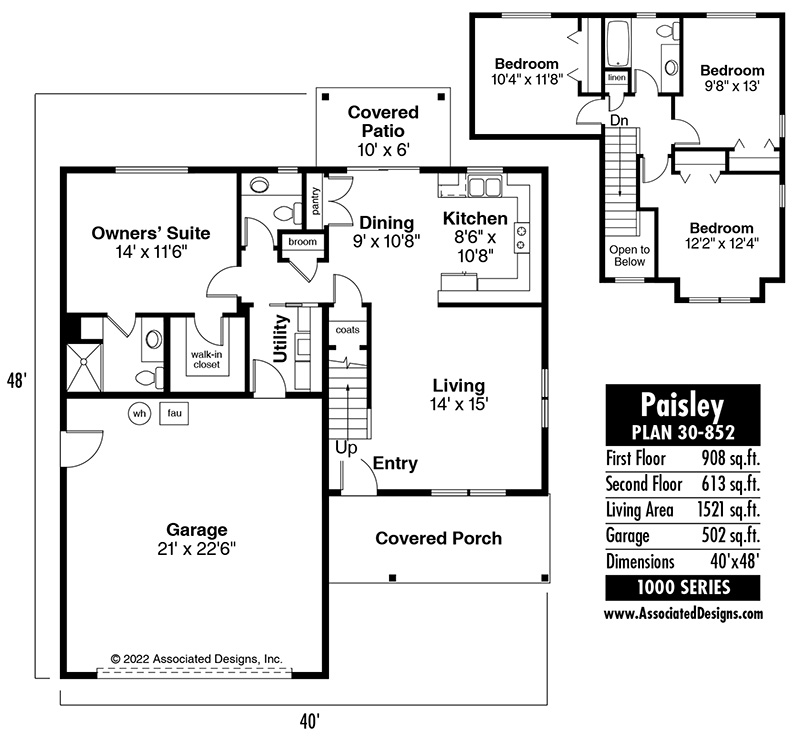 The Paisley 30-852 is created by Associated Designs, Inc.’s talented team of residential home designers. To learn more about this design visit www.AssociatedDesigns.com.