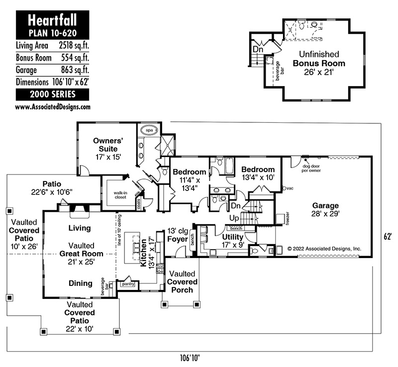 The Heartfall 10-620 is created by Associated Designs, Inc.’s talented team of residential home designers. To learn more about this design visit www.AssociatedDesigns.com.