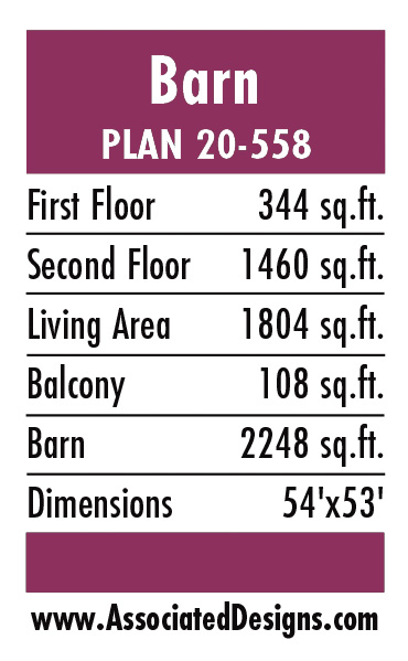 Plan 20-558 is created by Associated Designs, Inc.’s talented team of residential home designers. To learn more about this design visit www.AssociatedDesigns.com.